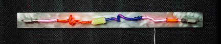 These are examples of many custom works of unique, individual neon units hand-manipulated in whimsical fashion often used in decorative applications. Many variations are available in different sizes and with different mountings. |